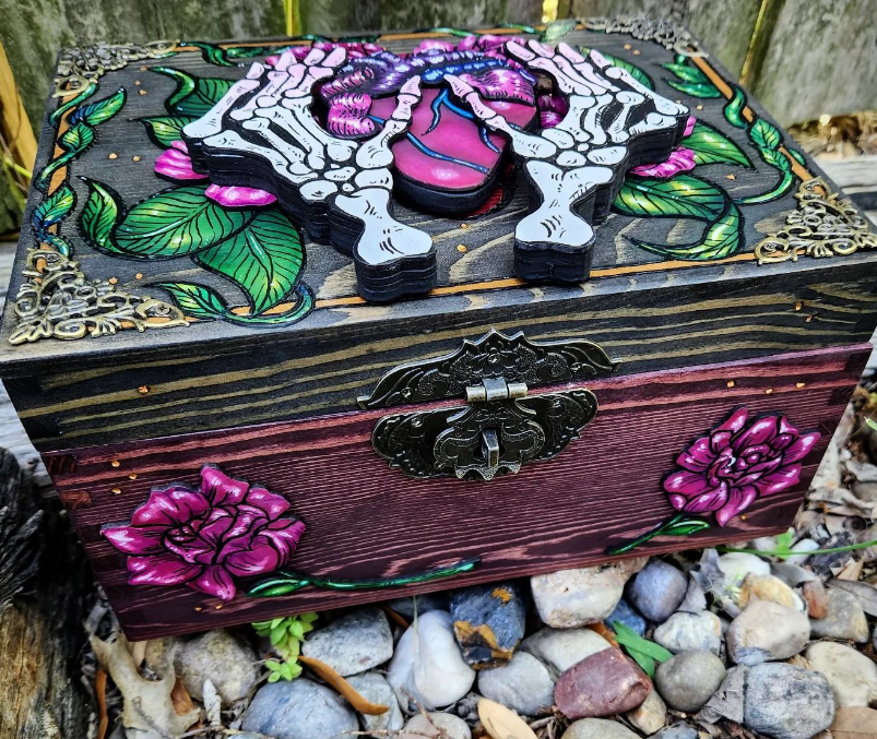 Candace makes these really intricate boxes. They are beautifully designed in such a way, that the key to open them is hidden in pain sight.